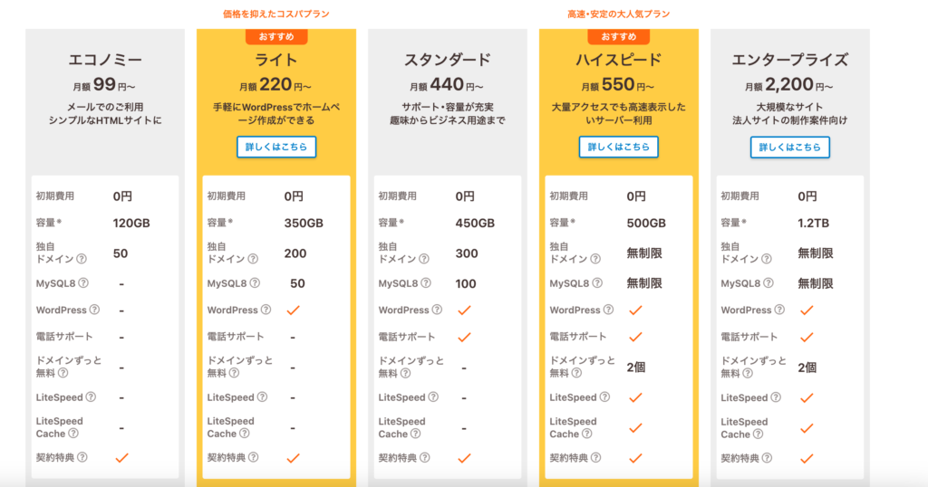 細かい料金は下の表を参考にしてください。